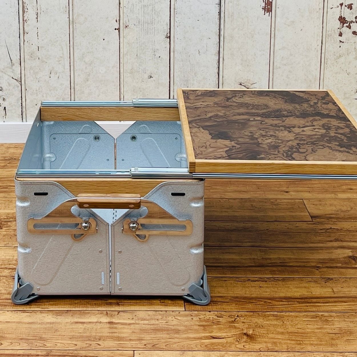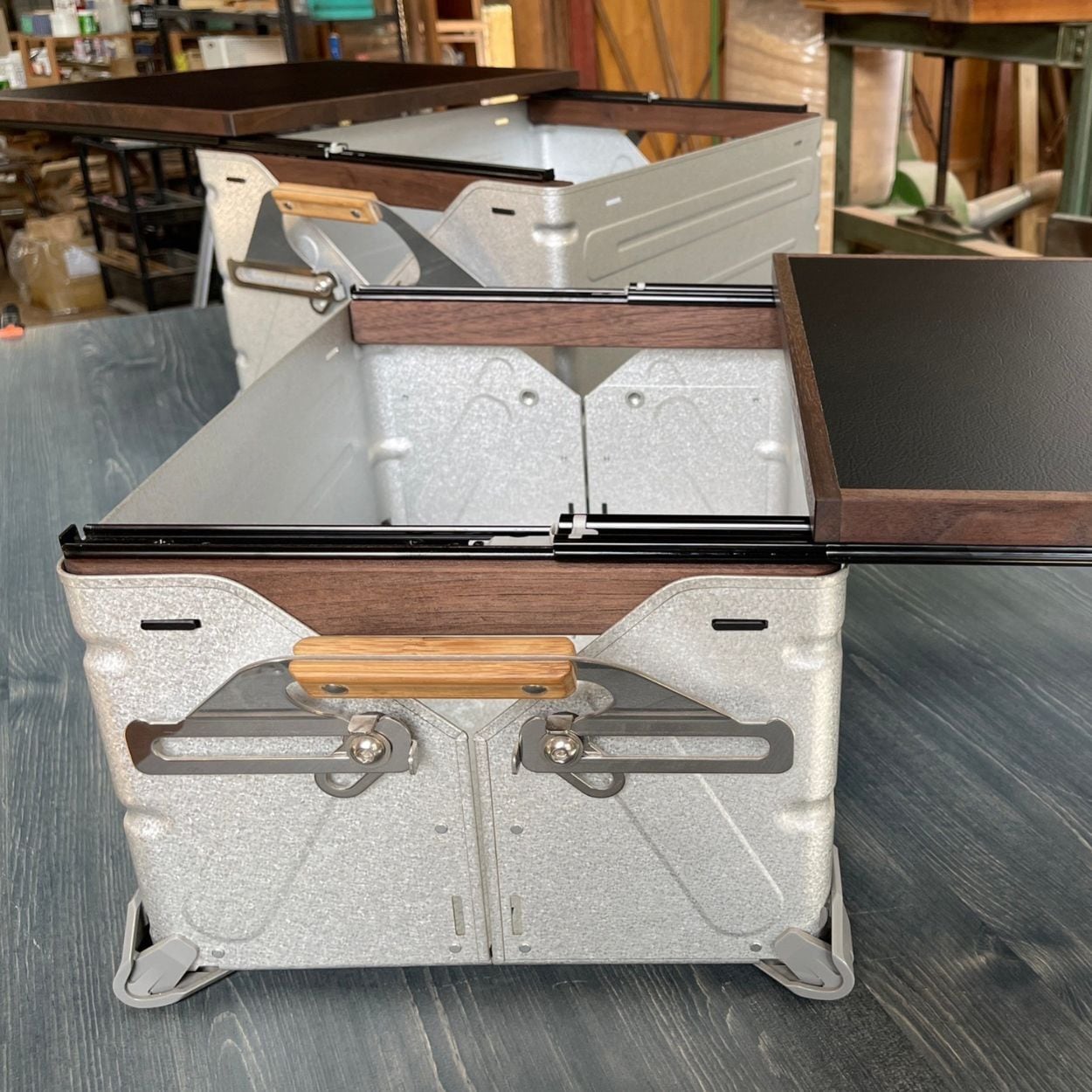 天板表面には砂埃などのキズに強く、耐熱性に優れたアイカ工業製のメラミンを使用しています。ユーザーのニーズに応えるべく、キャンプシーンに対応した素材を妥協なく厳選しました。