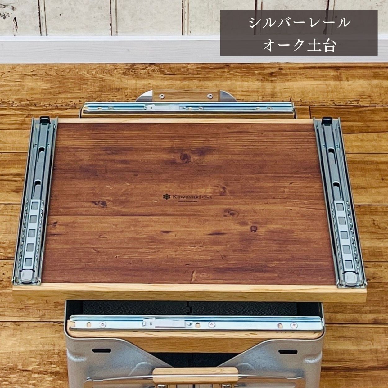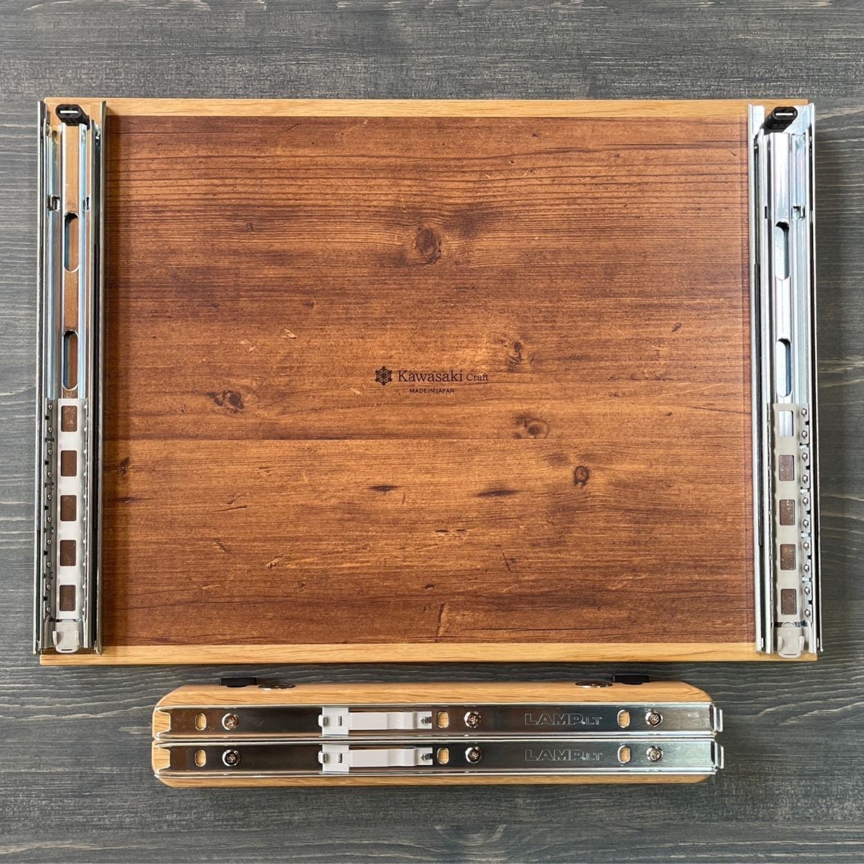 天板の縁やスライド下部の台木には、高級家具材のウォールナット、オークからご選択頂けます。